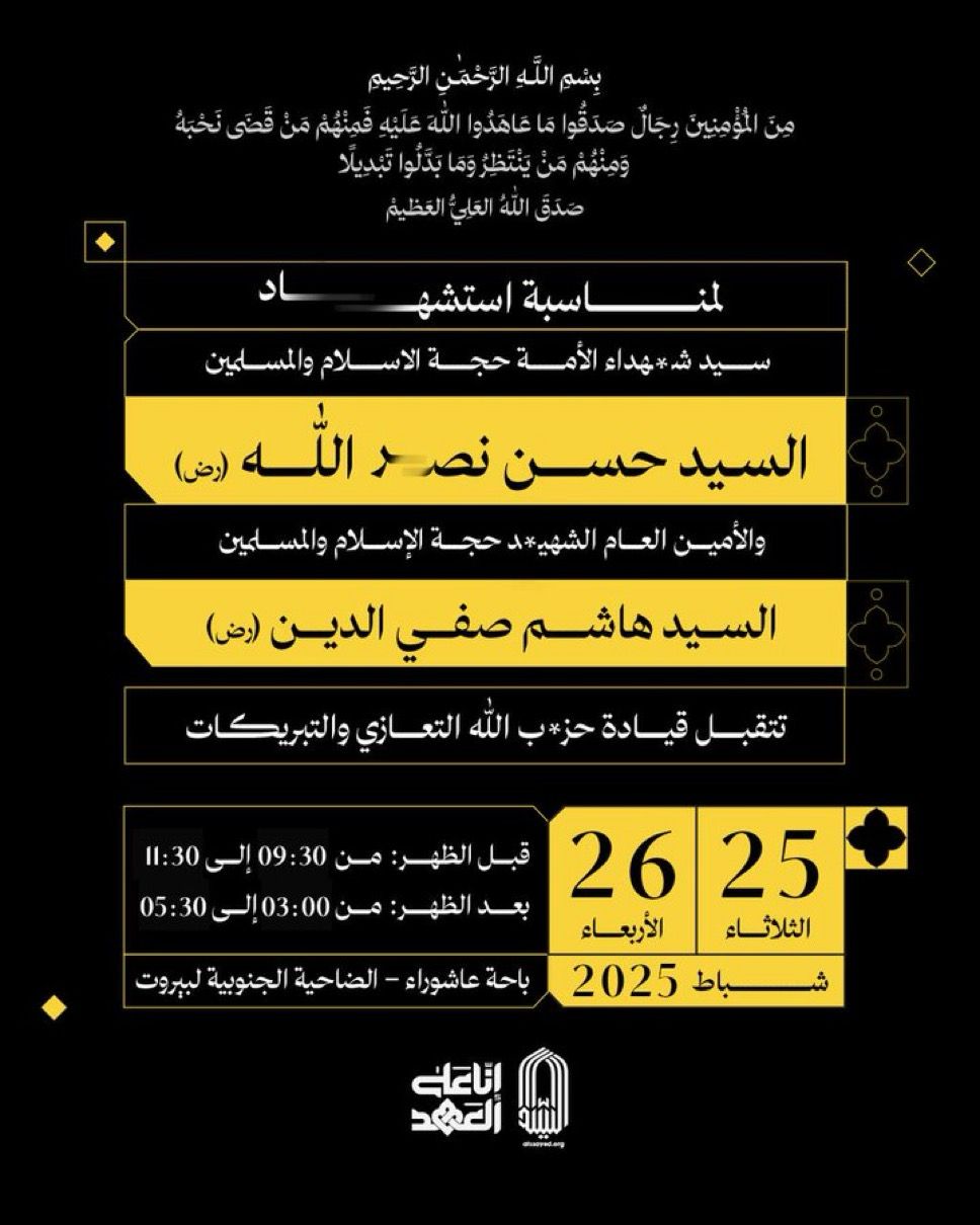 اخبار محليةعلى مدار الساعة وفود في باحة عاشوراء لتقديم التعازي بالسيدين نصر الله وصفي الدين فبراير 25, 2025 0 130 FacebookTwitterWhatsApp