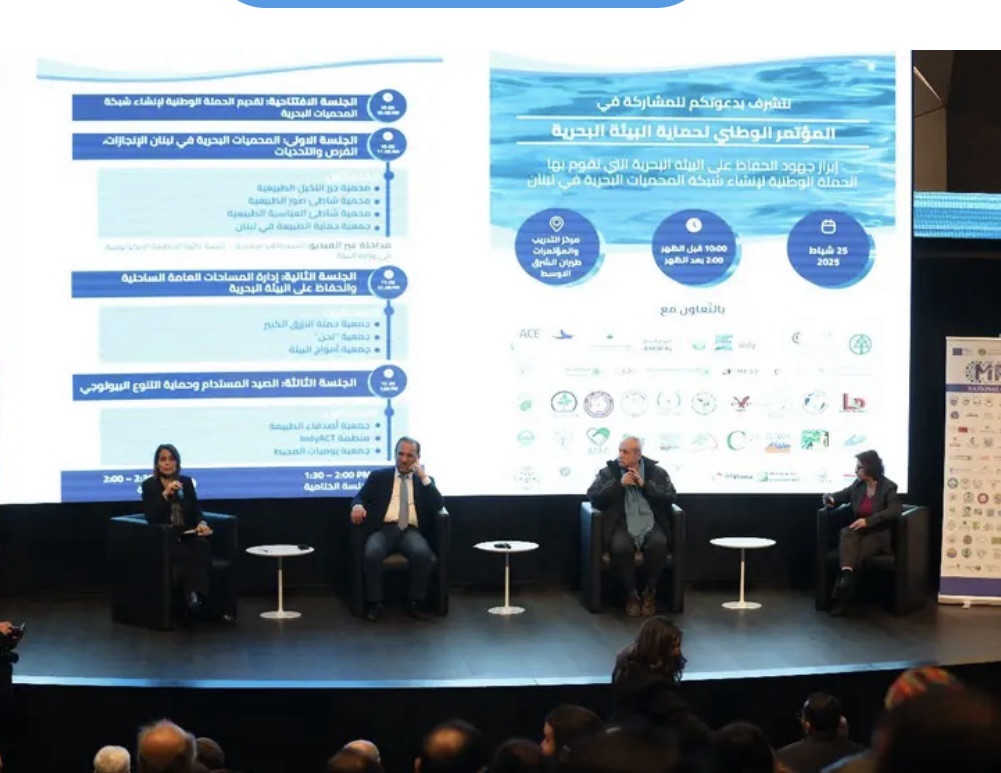 نظمت الحملة الوطنية لإنشاء شبكة مناطق محمية بحرية مؤتمراً وطنياً لحماية البيئة البحرية في 25 فبراير 2025 في مركز التدريب والمؤتمرات التابع لطيران الشرق الأوسط . هذا الحدث البارز سلط الضوء على الحاجة الملحة لإنشاء شبكة مناطق محمية بحرية (MPA) في لبنان لحماية تنوعه البيولوجي البحري الغني، والحفاظ على موارده البحرية، والمساهمة في صحة نظمها البيئية الساحلية على المدى الطويل.جمع المؤتمر منظمات بيئية لبنانية، مؤسسات علمية، والمجتمعات المحلية التي تتشارك هدفًا مشتركًا: وهو إنشاء شبكة محميات بحرية متصلة تغطي ما لا يقل عن 30% من المنطقة الاقتصادية الخالصة للبنان بحلول عام 2030. هذا الهدف هو جزء من استراتيجية شبكة المناطق المحمية البحرية الوطنية التي وضعتها وزارة البيئة في عام 2012، والتي تحدد الخطوات اللازمة لتطوير شبكة محميات بحرية لضمان الحفظ طويل الأجل والاستخدام المستدام لموارده البحرية.ركزت رسائل المؤتمر على الحاجة الملحة لتنفيذ هذه الاستراتيجية فوراً، وإنشاء إدارة فعالة وتمويل مناسب للمناطق المحمية الحالية والمستقبلية. وفي إطار النقاشات، شدد المتحدثون على أهمية وقف الأنشطة الضارة مثل التلوث، والصيد الجائر، وتدمير المواطن التي تواصل الإضرار بالنظم البيئية البحرية للبنان.المطالب الرئيسية والنقاط البارزة: