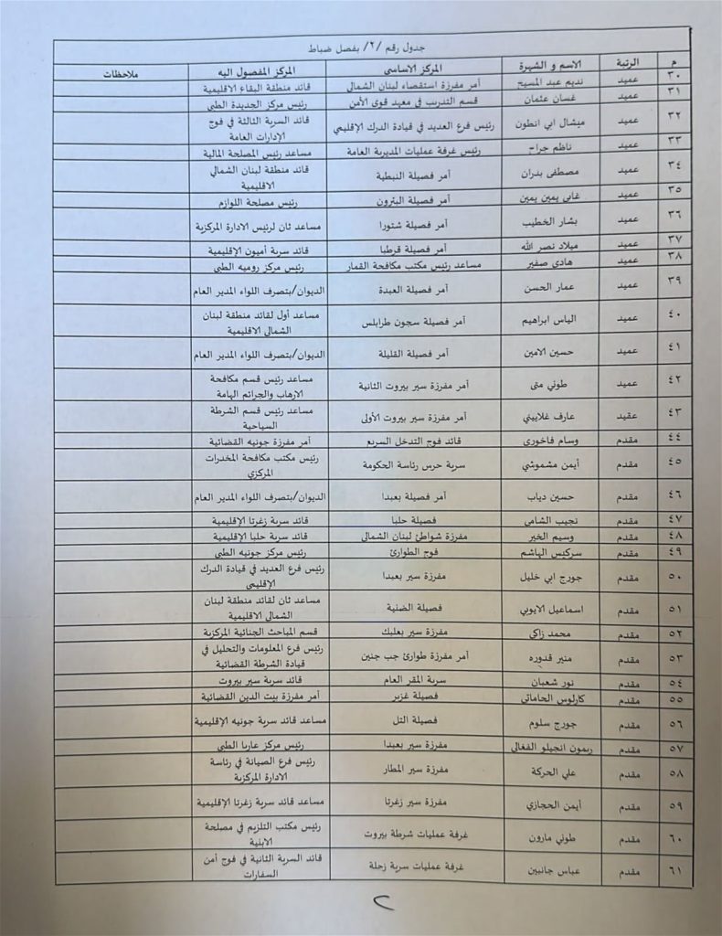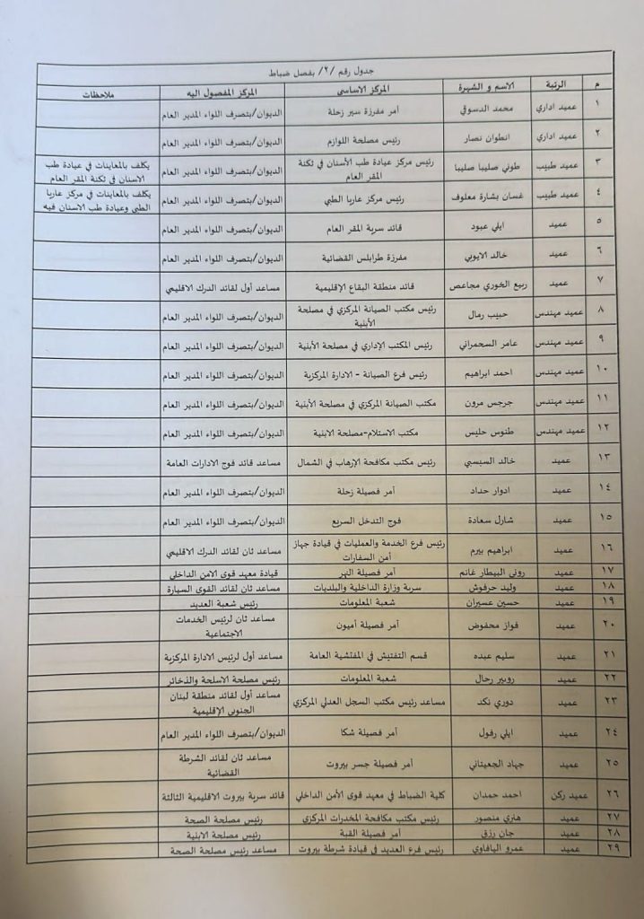 لكن اللافت في هذه التشكيلات هو وضع 14 ضابطاً برتبة عميد “بتصرف المدير العام”