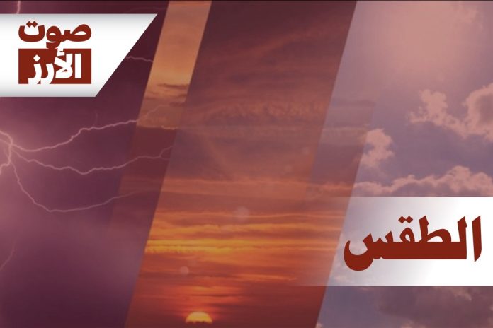 – الحال العامة: طقس متقلب يسيطر على لبنان والحوض الشرقي للمتوسط حتى بعد ظهر اليوم السبت فيستقر الطقس تدريجيا حتى يوم الأربعاء، حيث يتعرض الحوض لمنخفض جوي يؤدي إلى طقس متقلب وماطر. تحذير من تكون طبقات من الجليد على الطرقات الداخلية والجبلية التي تعلو عن 1400 متر خلال الليل، وساعات الصباح الأولى مما يؤدي إلى خطر الانزلاقات.