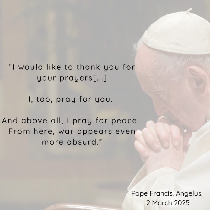 اخبار دوليةعلى مدار الساعة البابا: اصلي لكم وادعو لمواصلة الصلاة مارس 2, 2025 0 106 FacebookTwitterWhatsApp من مستشفى جيميلي في روما، يشكر البابا المؤمنين على قربهم منه في لحظة “ضعفه” ويدعوهم إلى مواصلة الصلاة من أجل السلام في العالم