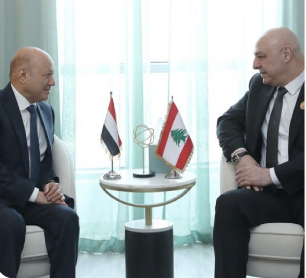 اخبار محليةعلى مدار الساعة *الرئيس عون بحث الأوضاع الإقليمية مع رئيس مجلس القيادة الرئاسي اليمني، الدكتور رشاد محمد العليمي، وذلك قبيل انعقاد القمة العربية في القاهرة* مارس 4, 2025 0 100 FacebookTwitterWhatsApp