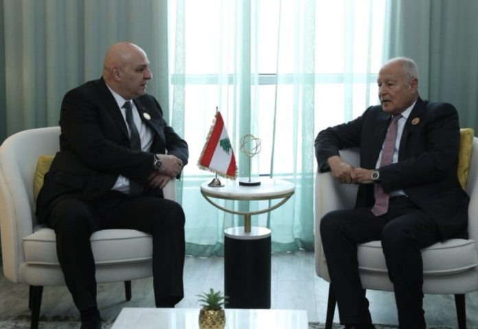كما استقبل الرئيس عون، الامين العام لجامعة الدول العربية احمد ابو الغيط يرافقه الأمين العام المساعد حسام زكي، الذي وضع الرئيس عون في أجواء المداولات التي سبقت الجلسة الافتتاحية اليوم ومشروع البيان الذي تم الاتفاق عليه. وحضر اللقاء الوزير رجي.