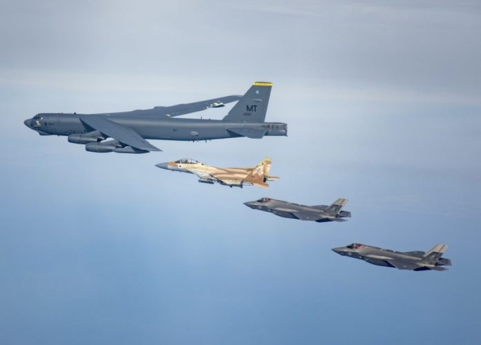 وشارك في التمرين مقاتلات إسرائيلية من طراز “إف 35 آي” و”إف 15 آي”، التي حلقت جنبًا إلى جنب مع قاذفة أميركية استراتيجية من طراز “بي 52”. ووفقًا للبيان، تدربت القوات على تنسيق العمليات بين الجيشين لتعزيز جاهزيتهما في مواجهة التهديدات الإقليمية.