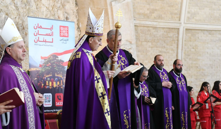 ترأس البطريرك الماروني الكاردينال مار بشارة بطرس الراعي قداس الأحد على مذبح كنيسة الباحة الخارجية للصرح البطريركي في بكركي “كابيلا القيامة ” اطلق خلاله حملة كاريتاس لبنان السنوية ٢٠٢٥ تحت شعار “إيمان،إنسان،لبنان”، عاونه فيه المشرف على رابطة كاريتاس المطران بولس عبد الساتر، النائب البطريركي المطران انطوان عوكر، رئيس كاريتاس الأب ميشال عبود، رئيس الجامعة اليسوعية البروفسور سليم دكاش، ولفيف من الكهنة، في حضور وزير الاعلام الدكتور بول مرقص ممثلا بالمحامية بولين يمّوني، رئيس الرابطة المارونية السفير الدكتور خليل كرم، نقيب المحررين جوزيف القصيفي، نقيب الصحافة عوني الكعكي ممثلا بالاعلامية ندين صموئيل، نائب رئيس كاريتاس الدكتور نقولا الحجار،أعضاء مجلس الادارة ورؤساء الاقاليم وعائلة كاريتاس، وحشد من الفعاليات السياسية والقضائية والنقابية والعسكرية والاعلامية والمؤمنين، وخدم القداس شبيبة كاريتاس.