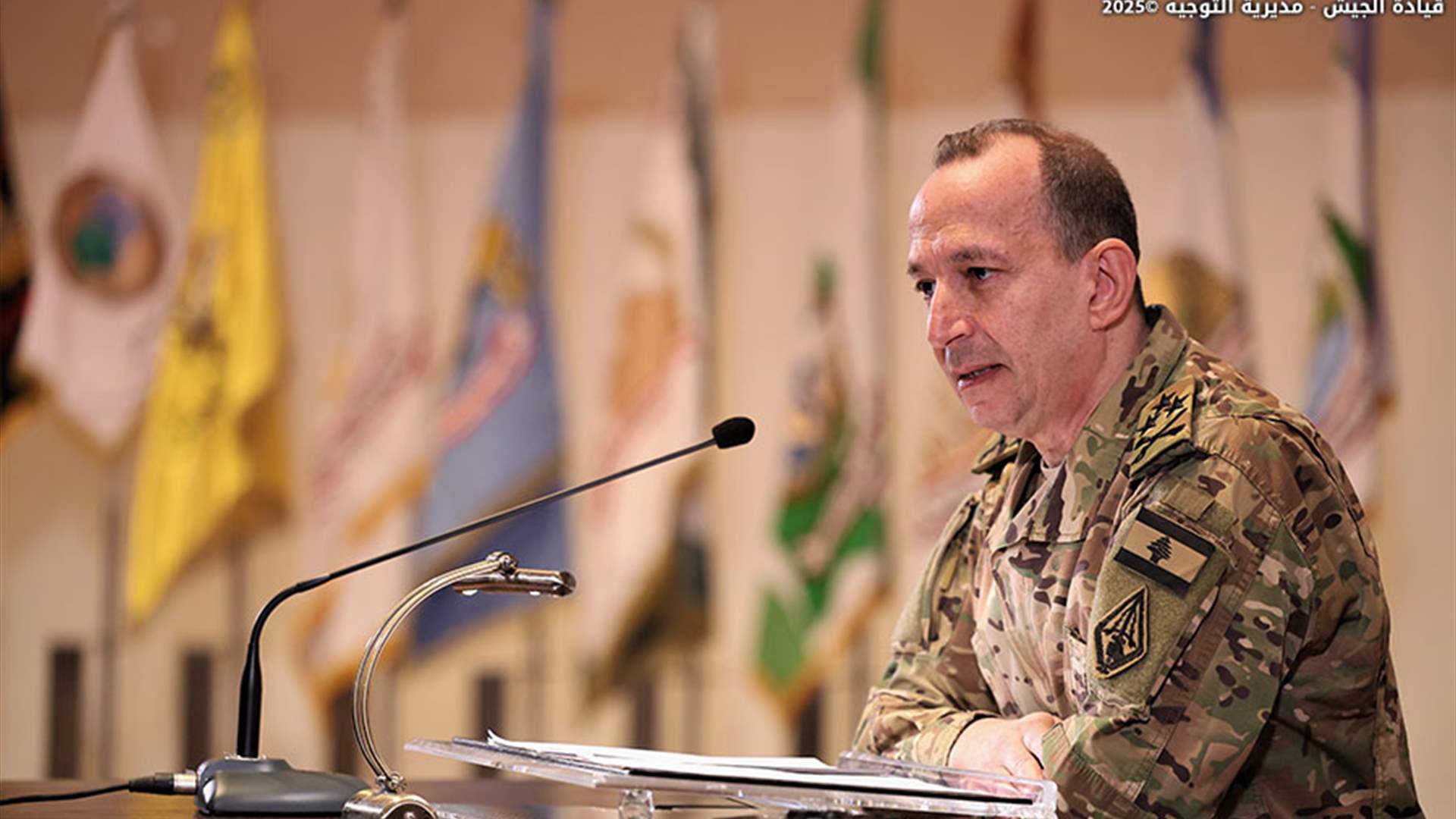 وختم معربًا عن شكره لرئيس الأركان اللواء الركن حسان عوده على جهوده المبذولة خلال تسلُّمه أمانة القيادة، ومؤكدًا أن المرحلة الحالية تتطلب أقصى درجات الوعي والاستعداد الكامل للتضحية في سبيل لبنان، وأن الجيش جاهز للقيام بدوره مهما بلغت الصعوبات.