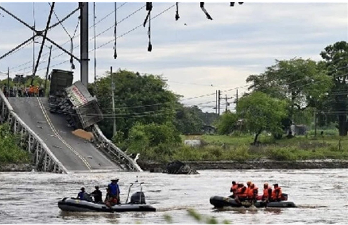 ووقع الحادث الأربعاء في بلدة داولي الريفية الصغيرة في جنوب غرب البلاد فوق نهر ماغرو فيما كانت تسير على الجسر خمس شاحنات ودراجتان ناريتان.