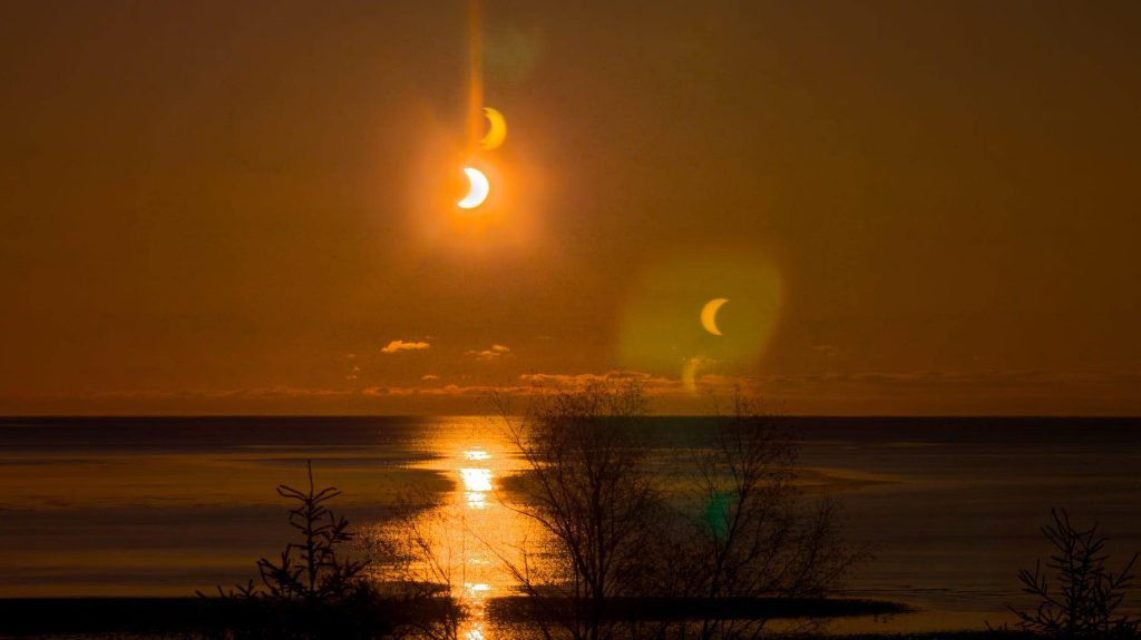 في مشهد آسر، التقت الشمس مع القمر الذي اختفى جزئيا السبت خلال كسوف جزئي فوق جزء من نصف الكرة الأرضية الشمالي، من شرق كندا إلى سيبيريا.