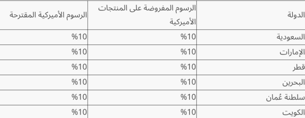أما دول الخليج، ففرض الرئيس الأميركي رسوماً متبادلة بنسبة 10% وهي عند الحد الأدنى.