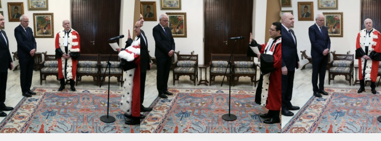 أقسم مدّعي عام التمييز، القاضي جمال الحجار، ورئيس هيئة التفتيش القضائي، القاضي أيمن عويدات، ورئيس مجلس شورى الدولة، القاضي يوسف الجميل، اليمين أمام رئيس الجمهورية، العماد جوزاف عون، وذلك بحضور وزير العدل، عادل نصار، ورئيس مجلس القضاء الأعلى، القاضي سهيل عبود