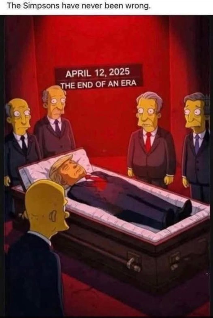 اخبار دوليةعلى مدار الساعة (بالفيديو) كارتون “السيمسونز”يتنبأ بوفاة ترامب ؟! أبريل 3, 2025 0 215 FacebookTwitterWhatsApp تم التداول على وسائل التواصل الاجتماعي بصورة و فيديو من كرتون “سيمسونز” الشهير، الذي اشتهر بعرض مشاهد تتحقق بعد سنوات، حيث تظهر صورة للرئيس الأمريكي دونالد ترامب في تابوت مع تاريخ الوفاة