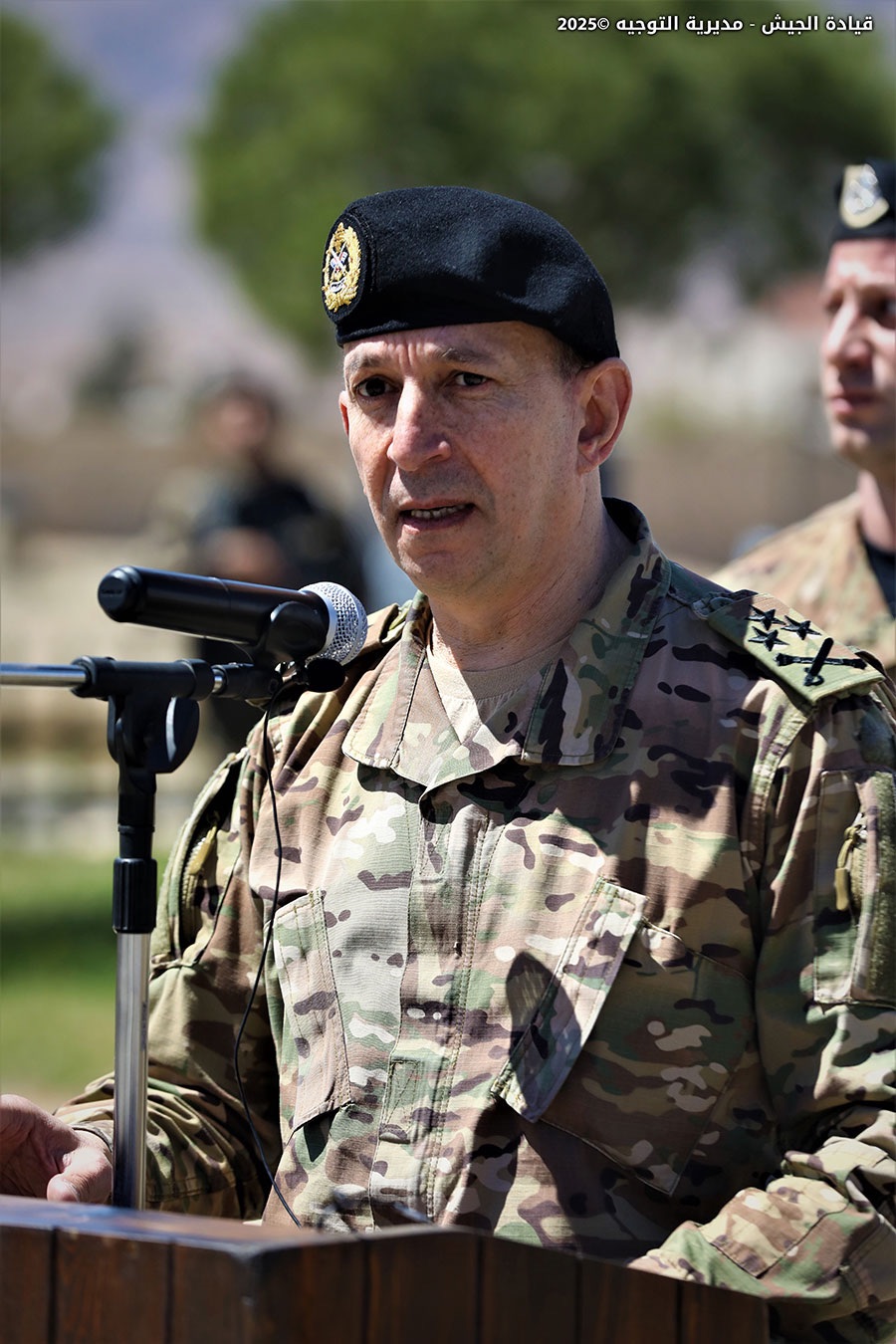 كما توجه إليهم بالقول: “الجيش هو المؤسسة الوطنية الجامعة التي تحمي وطننا بجميع فئاته، وينضوي فيها العسكريون من مختلف المناطق اللبنانية من أجل الدفاع عن الوطن وصون أمنه في الداخل وعلى امتداد الحدود. أنتم تؤدون واجبكم على أكمل وجه بفضل ما تتحلون به من عزيمة، وتكافحون التهريب، وتقومون بدور إيجابي في المنطقة الحدودية بين لبنان وسوريا، في ظل التواصل والتنسيق المستمر مع السلطات السورية. “