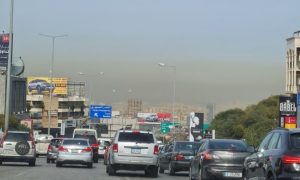 (الصورة ادناه على اليسار تظهر طبقة التلوث البنيّة اللون فوق مدينة بيروت).