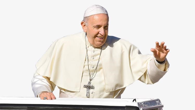 ووقف البابا فرنسيس أمام المذبح الرئيسي تحت أشعة الشمس الساطعة ولوح للحشود قبل أن يتحدث لفترة وجيزة.