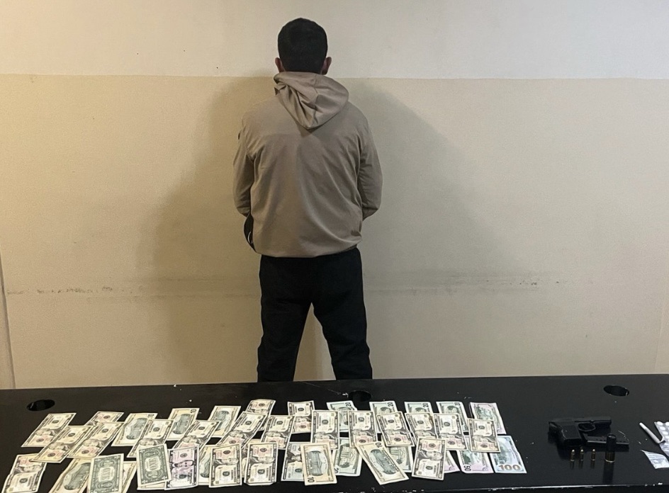 كما ضبط بحوزته سلاح حربي ومواد مخدرة ومبالغ مالية.