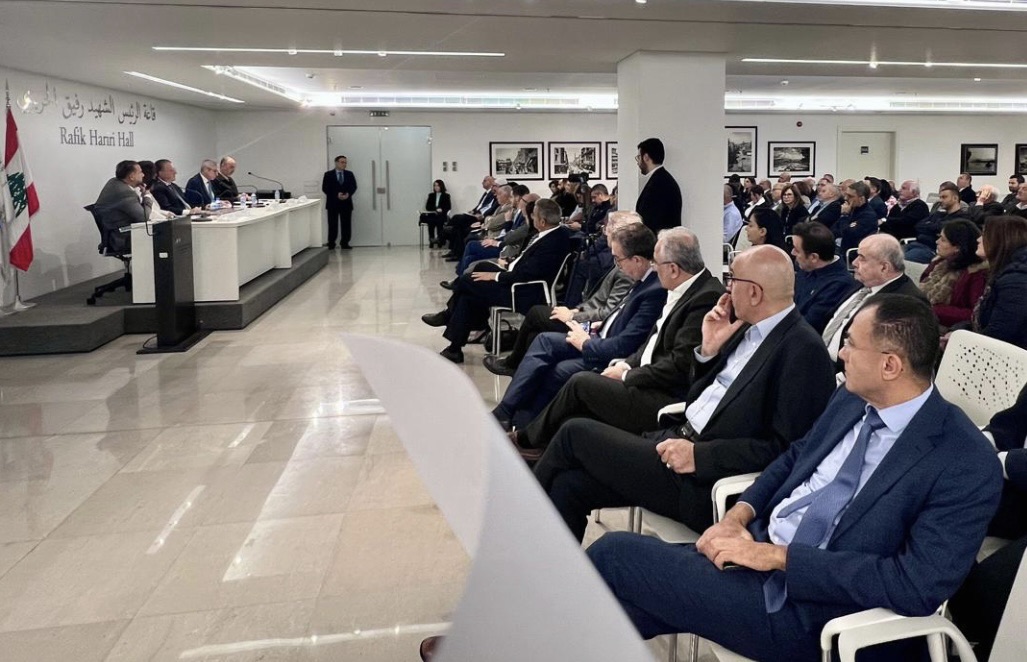 نظمت الهيئات الاقتصادية برئاسة الوزير السابق محمد شقير بالشراكة مع جمعية الضرائب اللبنانية برئاسة هشام المكمل وبالتعاون مع وزارة المال، اليوم في غرفة بيروت وجبل لبنان، ندوة حول القانون رقم 330 الصادر في 4 شباط 2024 والمتعلق بإعادة التقييم الاستثنائية للمخزون والأصول الثابتة ومعالجة فروقات الصرف والقرارات التطبيقية ذات الصلة، بمشاركة ممثلة مدير عام وزارة المال جورج المعراوي السيّدة فيكتوريا مقدسي وممثلين عن الوزارة محمد وفائي وشربل إغناطوس، وبحضور حشد كبير من مديري ومسؤولي أقسام المحاسبة في الشركات اللبنانية.