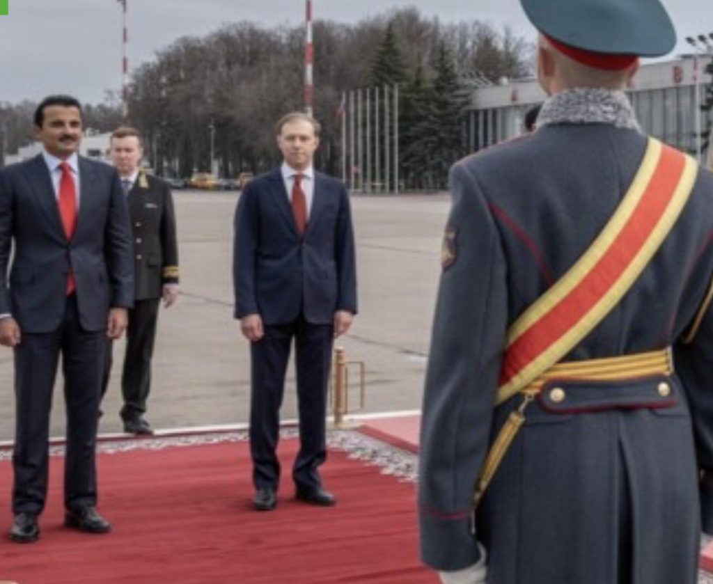 وكانت قد ذكرت وكالة “تاس” الروسية للأنباء، أن “أمير قطر الشيخ تميم بن حمد آل ثاني وصل إلى موسكو اليوم الخميس في زيارة تشمل محادثات مع الرئيس الروسي فلاديمير بوتين بشأن أوكرانيا والأوضاع في الشرق الأوسط”.
