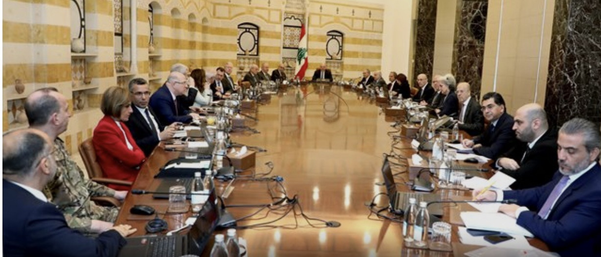 ثم تناول فخامة الرئيس دور الجيش اللبناني والصعوبات والتحديات الكبيرة التي تواجهه سواء بالظروف أو بالعديد والعتاد، وهو دور متعاظم جداً قياسا على إمكاناته والحاجات المطلوبة منه. وأعطى الكلام للعماد قائد الجيش الذي حضر الجلسة، وعرض ملخصاً عن الوضع والإجراءات الأمنية المتخذة، خصوصاً في الفترة بعد الترتيبات المتعلقة بوقف الاعمال العدائية التي التزم بها لبنان وجيشه خلافا لإسرائيل، مما أثر سلباً على استكمال انتشار الجيش اللبناني وبسط سلطة الدولة رغم الجهود والنتائج الملحوظة المبذولة لذلك، لاسيما لناحية التطويع والانتشار الذي يحول الاحتلال الإسرائيلي واعتداءاته المتكررة فقط، دون استكماله في جنوب الليطاني، وليس أي جهة أخرى في الداخل. كما لم يعد بالإمكان اجتياز شمال الليطاني الى جنوبه إلا عبر المرور بحواجز الجيش اللبناني، فضلا عن الحواجز الداخلية ونقاط التفتيش، وأيضا جرى استعراض ضبط ومصادرة أي معدات او أسلحة او ذخائر عسكرية، وكان هذا الاستعراض دقيقاً من حيث الوقائع والأرقام والإحصاءات الموثقة التي تثبت جهود الجيش الذي نفذ آلاف المهمات، علماً ان ثمة 2740 خرقاً إسرائيلياً منذ الترتيبات التي ذكرتها، وقد سقط لنا 190 شهيداً فضلاً عن 485 جريحاً مذ ذاك. وتم التنويه بالدعم الذي يتلقاه الجيش من الدول الشقيقة والصديقة، وتم شكر هذه الدول.