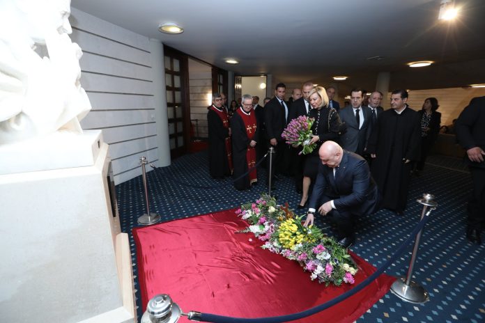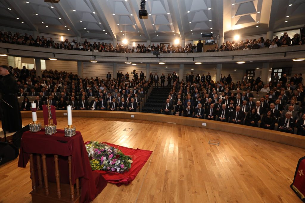 وكان الرئيس عون واللبنانية الاولى وصلا الى جامعة روح القدس- الكسليك عند العاشرة والدقيقة الخامسة والعشرين. وكان في استقبالهما عند المدخل، الاباتي محفوظ ورئيس الجامعة الاب طلال هاشم اللذان رافقاهما الى قاعة البابا يوحنا بولس الثاني. وبعدما وضع رئيس الجمهورية وقرينته باقتي زهر امام جثمان المصلوب دخلا الى القاعة وسط تصفيق الحاضرين.