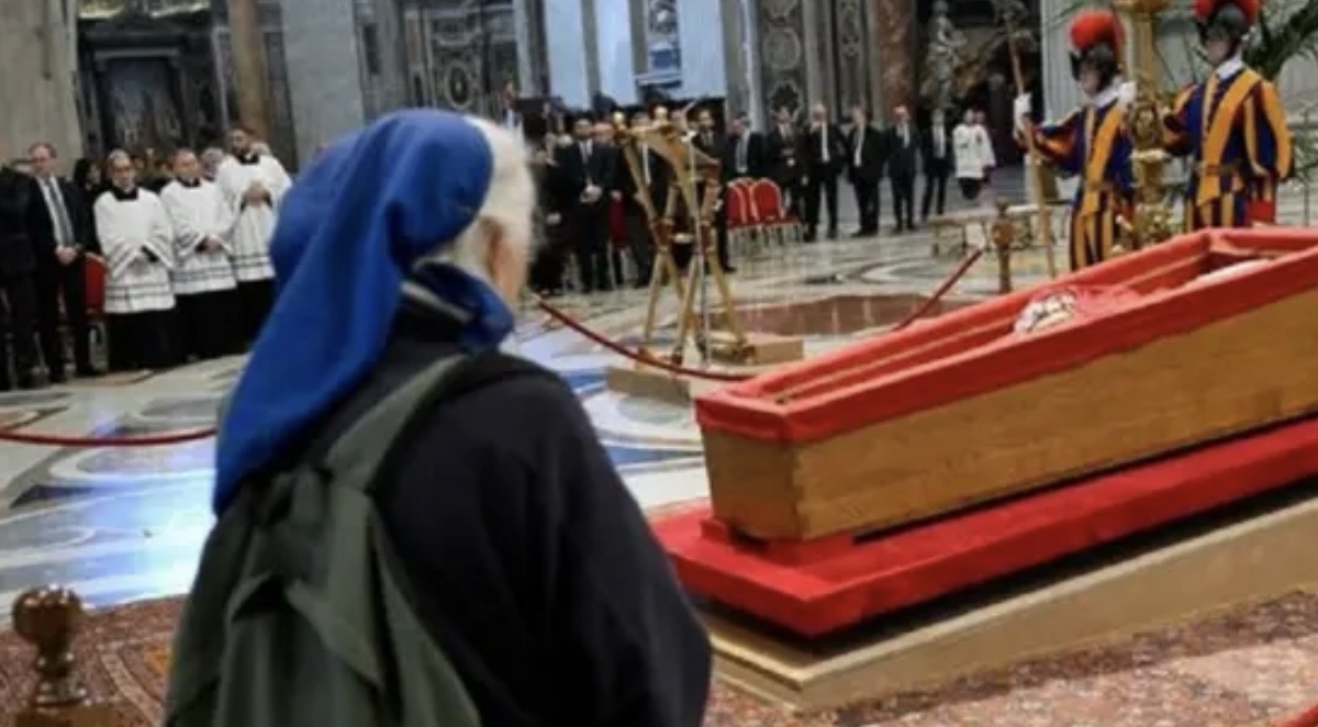 احتار كثيرون، أمس الأربعاء، بامرأة وجدوها تخرق بروتوكول الفاتيكان، وتشق طريقها وسط كرادلة وأساقفة ورجال دين محليين وأجانب، اكتظ بهم صحن كنيسة القديس بطرس، ثم تقف وتلقي نظرة دامت أكثر مما ينبغي على النعش المسجى فيه جثمان البابا من وشوشات عدد قليل من الحاضرين يعرفونها، وصل خبرها إلى البقية، وبينهم إعلاميون، ذكروا بأخبارهم المرفقة بفيديوهات صوّروها، أنها راهبة فرنسية أرجنتينية الأصل، صديقة قديمة للبابا، اسمها Geneviève Jeanningros وأصغر سنا منه بسبع سنوات، وأنها الوحيدة التي سمحت لها دائرة البروتوكول في الحاضرة الفاتيكانية، بالوصول إلى الحبال المحددة مساحة الاقتراب من النعش، وفقا لما نراها في الفيديو أدناه، وفيه يظهر أحدهم من دائرة البروتوكول، يرافقها إلى أقرب مكان من النعش.