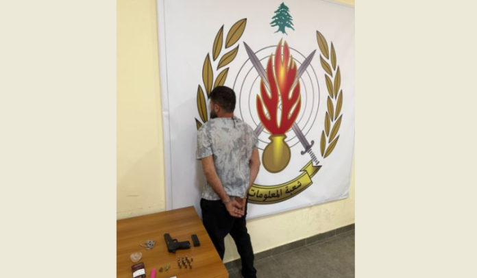 بتفتيشه، ضبطت بحوزته مسدّس حربي وكميّة من المواد المخدّرة.