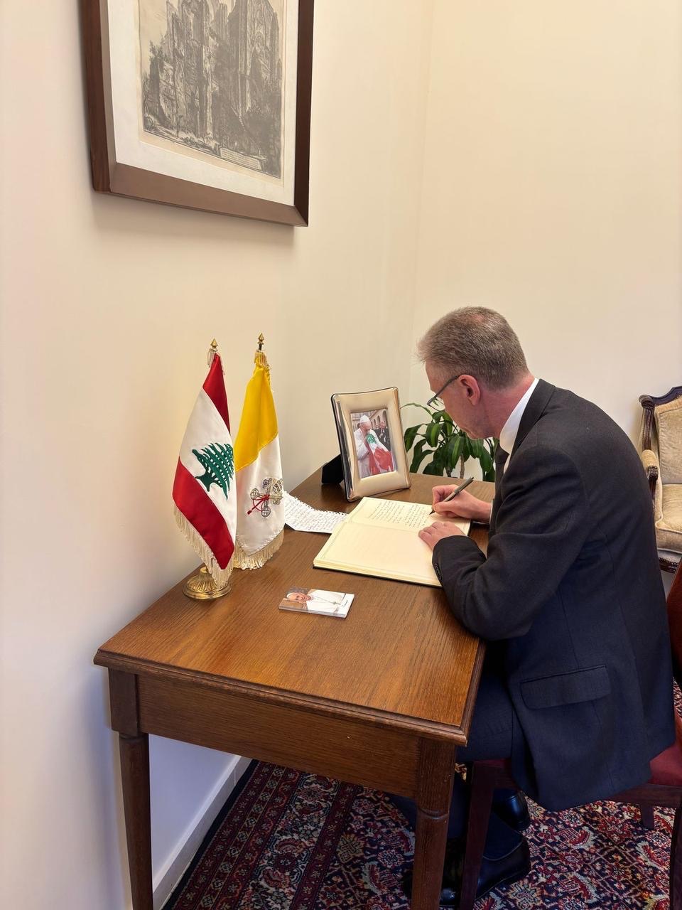 زار وزير الخارجية والمغتربين يوسف رجي السفارة البابوية في حريصا، حيث قدّم التعازي إلى السفير البابوي المونسنيور باولو بورجيا بوفاة قداسة البابا فرنسيس.