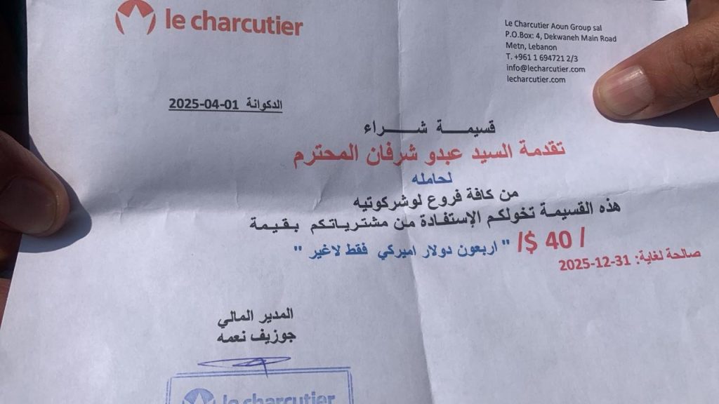 تشير المعلومات التي حصلت عليها صوت الارز إلى استخدام واسع للمال الانتخابي، لا سيما من قبل لائحة إنماء الحدت، عبر توزيع مولدات كهرباء وبونات شراء من بعض المتاجر. (مرفقة بالصورة)