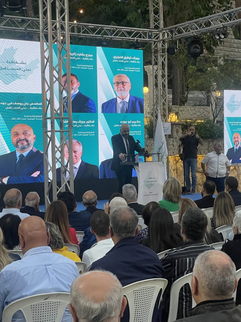 وأكد أبو جودة في كلمته أن الهدف من هذه اللائحة هو النهوض بالبلدية من خلال رؤية واضحة وبرنامج إنمائي متكامل، مشددًا على أن المعيار الأساسي لاختيار المرشحين كان الكفاءة، وليس الانتماء الحزبي، وقال: “لم نسأل إذا كان لدى المرشح بطاقة حزبية أو لا، بل سألنا إن كان قادراً على خدمة المنطقة. نريد أن ننتخب البرامج، لا البطاقات الحزبية”.