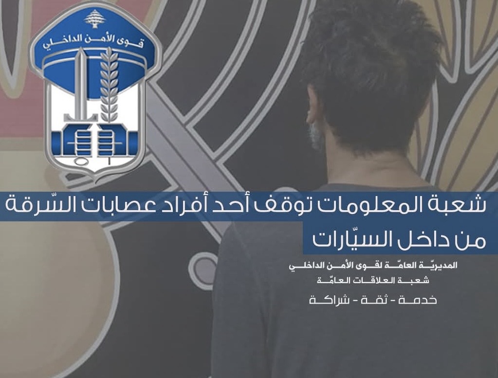 في إطار المتابعة المستمرّة التي تقوم بها قوى الأمن الداخلي لملاحقة جميع أنواع الجرائم وتوقيف مرتكبيها في مختلف المناطق اللّبنانية، وبعد أن كثُرَت عمليّات السّرقة من داخل السيّارات في مناطق عدّة من محافظة جبل لبنان.