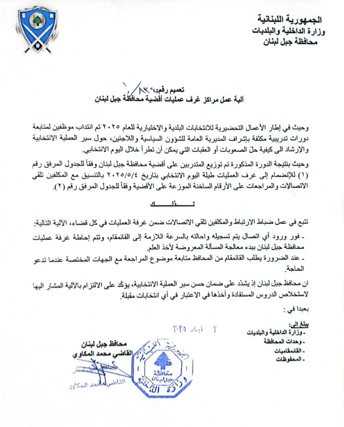 اخبار محليةعلى مدار الساعة تعميم من محافظ جبل لبنان بشأن آلية عمل المراكز مايو 3, 2025 0 125 FacebookTwitterWhatsApp صدر عن محافظ جبل لبنان، القاضي محمد المكاوي، مساء اليوم السبت، تعميم بشأن آلية عمل مراكز غرف عمليّات أقضية المحافظة.