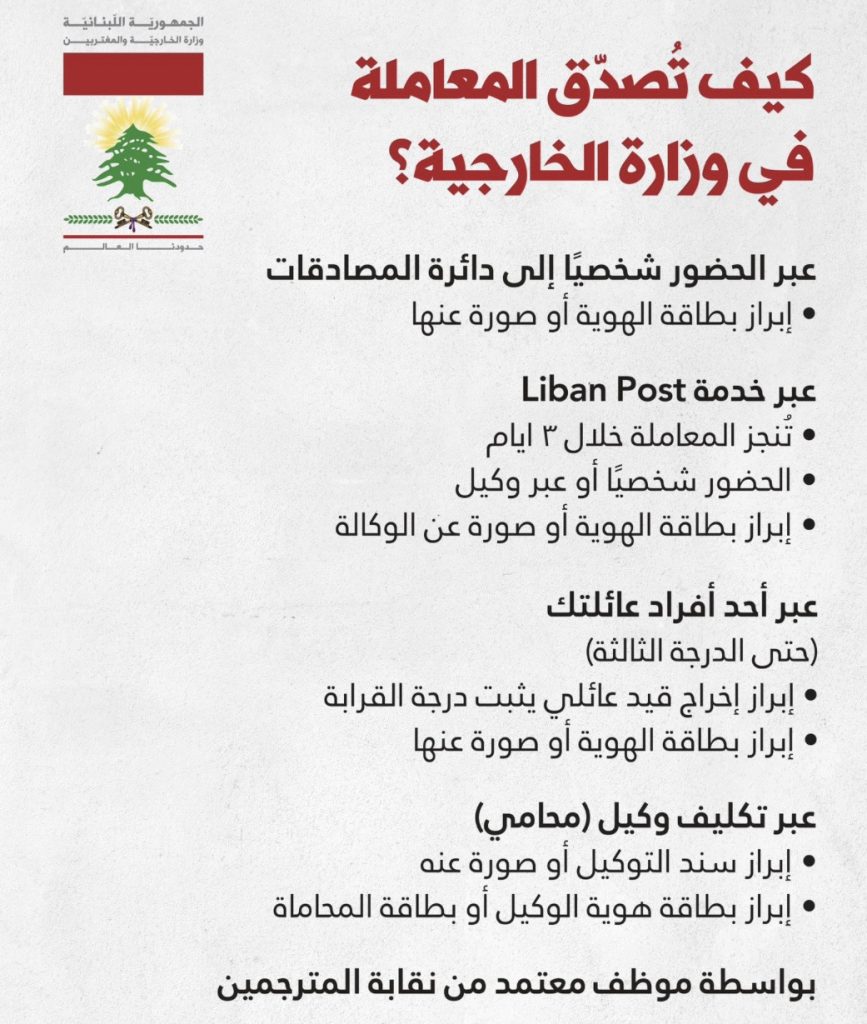 اخبار محليةعلى مدار الساعة * بالصورة : رجي يشرح آلية تصديق المعاملات في وزارة الخارجية* مايو 6, 2025 0 171 FacebookTwitterWhatsApp نشر وزير الخارجية يوسف رجي صورة على حسابه على منصة إكس يشرح فيها كيف يُمكن تصديق المعاملات في وزارة الخارجية: