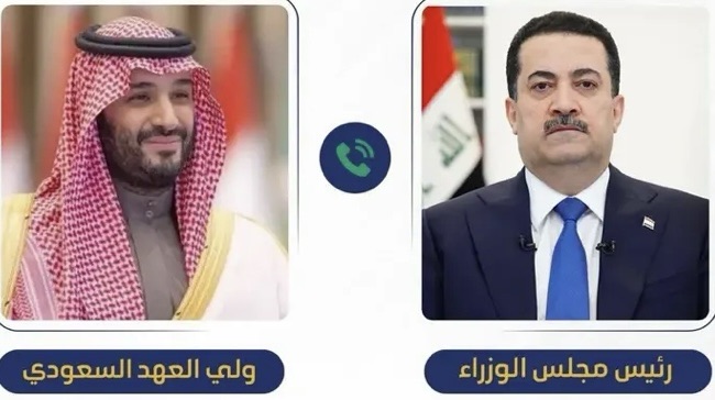 أجرى رئيس الوزراء العراقي محمد شياع السوداني، يوم الثلاثاء، اتصالاً هاتفياً بولي العهد السعودي الأمير محمد بن سلمان، بحثا خلاله العلاقات الثنائية وسبل تعزيزها في مختلف المجالات.