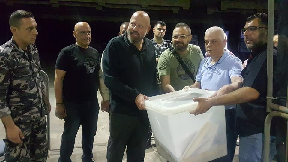 أشرف محافظ الشمال رمزي نهرا على عملية تسليم صناديق الاقتراع ومستلزماتها إلى رؤساء الأقلام والكتبة في معرض رشيد كرامي الدولي في طرابلس، وسط إجراءات أمنية منظمة نفذتها عناصر قوى الأمن الداخلي.