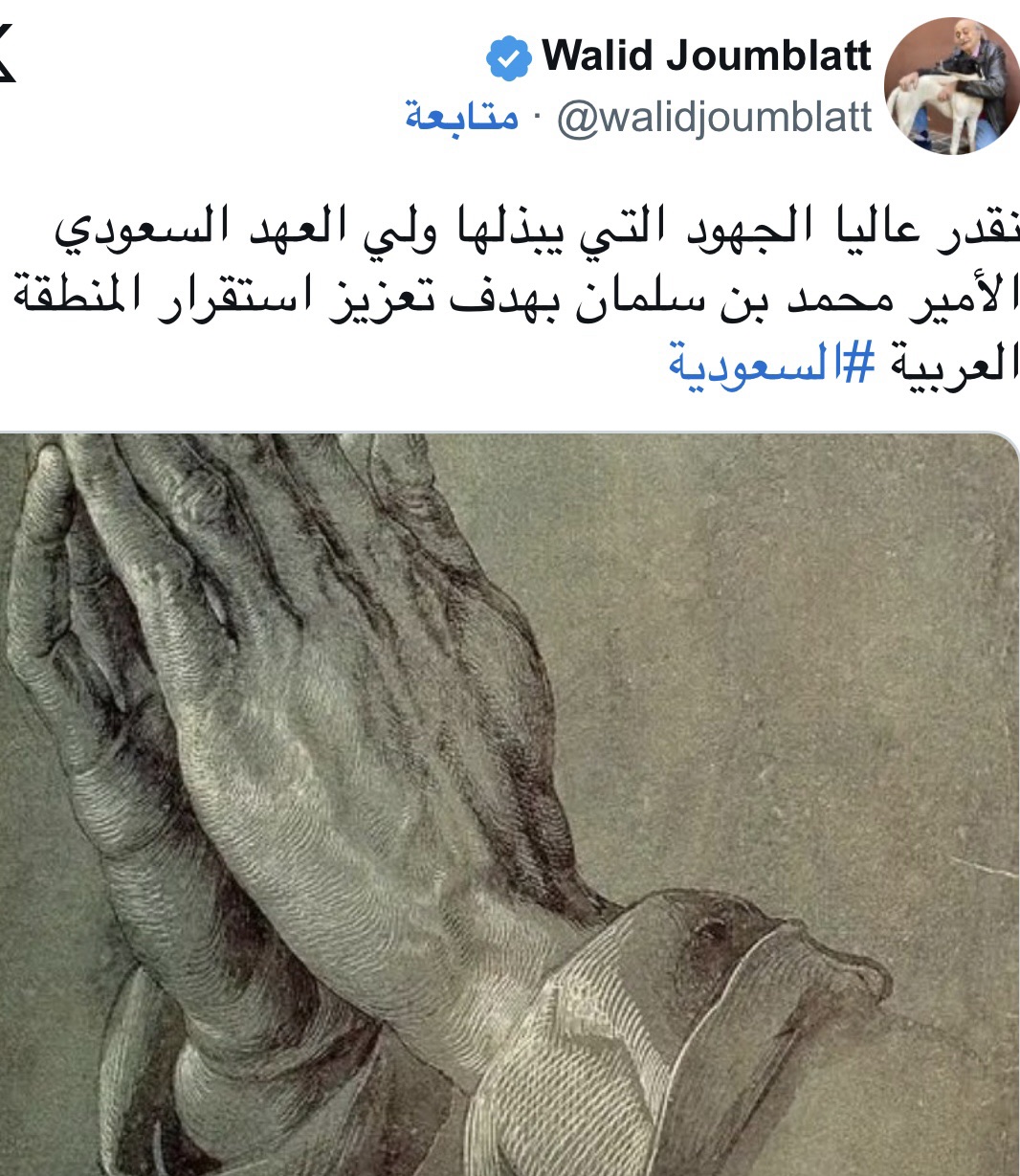 اخبار محليةعلى مدار الساعة *جنبلاط: نقدر عاليا الجهود التي يبذلها ولي العهد السعودي* مايو 13, 2025 0 103 FacebookTwitterWhatsApp كتب رئيس الحزب التقدمي الاشتراكي السابق وليد جنبلاط على منصة “اكس”:” نقدر عاليا الجهود التي يبذلها ولي العهد السعودي الأمير محمد بن سلمان بهدف تعزيز استقرار المنطقة العربية”.
