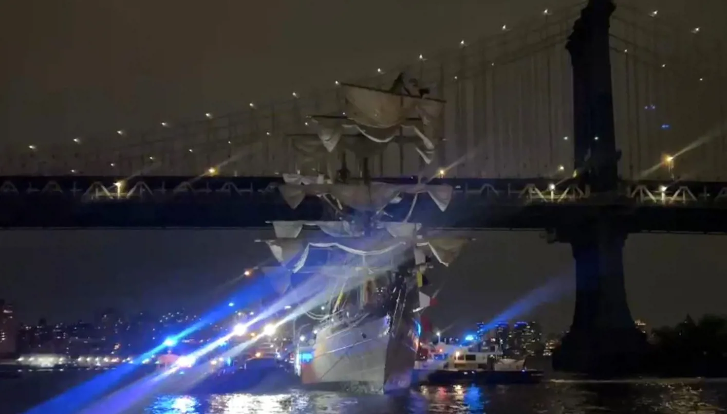 اصطدمت سفينة تدريب تابعة للبحرية المكسيكية بجسر بروكلين مساء السبت، ما أدى إلى كسر صواريها الثلاث وإطلاق عملية إنقاذ أسفل المعلم الشهير في مدينة نيويورك.