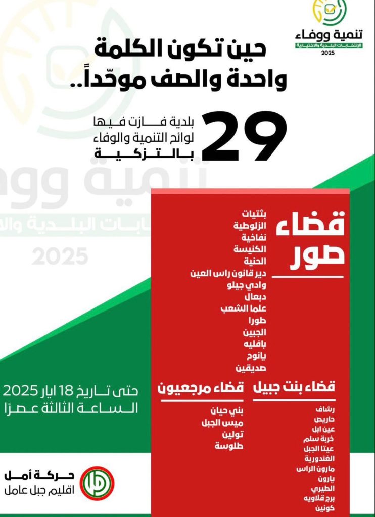 اخبار محليةعلى مدار الساعة *تسعٌ وعشرون بلدية فازت فيها لوائح التنمية والوفاء بالتزكية في أقضية صور وبنت جبيل ومرجعيون حتى الساعة الثالثة من عصر الأحد 18 أيار 2025* مايو 18, 2025 0 79 FacebookTwitterWhatsApp