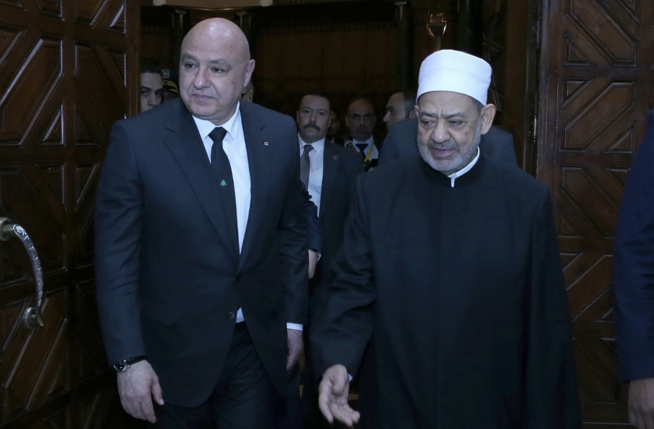 في مستهل اللقاء صافح الرئيس عون الوفد المصريالذي شارك في الاجتماع الموسع وضم وكيل الازهر الشريف الدكتور محمد عبد الرحمن الدويني، رئيس جامعة الازهر الدكتور سلامة داود، الدكتور عباس شومان امين عام هيئة كبار العلماء، الدكتورة سحر نصر وزيرة التعاون الدولي السابقة، الامينة العامة لصندوق الزكاة والصدقات المصري، الدكتور محمد الجندي الامين العام لمجمع البحوث الاسلامية، الشيخ احمد عبد الغني رئيس قطاع المعاهد الازهريةن السفير قادري عبد المطلب مستشار الامام الشيخ الازهر للبروتوكول، السفير عبد الرحمن موسى مسؤول الطلاب الوافدين في الازهر.