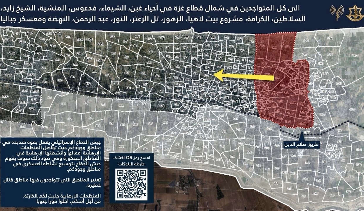 اخبار دوليةعلى مدار الساعة *إنذار عاجل لسكان شمال غزة: إخلاء فوري نحو الجنوب حفاظًا على السلامة* مايو 22, 2025 0 95 FacebookTwitterWhatsApp انذار عاجل الى كل سكان قطاع غزة المتواجدين في شمال القطاع في أحياء غبن، الشيماء، فدعوس، المنشية، الشيخ زايد، السلاطين، الكرامة، مشروع بيت لاهيا، الزهور، تل الزعتر، النور، عبد الرحمن، النهضة ومعسكر جباليا من أجل أمنكم، اخلوا فوراً جنوباً