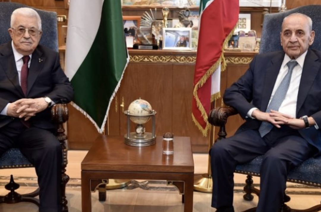 استقبل رئيس مجلس النواب الاستاذ نبيه بري في مقر الرئاسة الثانية في عين التينة الرئيس الفلسطيني محمود عباس والوفد المرافق بحضور السفير الفلسطيني أشرف دبور وامين سر حركة فتح وفصائل منظمة التحرير الفلسطينية في لبنان فتحي ابو العردات ، والمستشار الإعلامي للرئيس بري علي حمدان ، اللقاء الذي استمر زهاء ساعة تناول تطورات الاوضاع العامة في لبنان والمنطقة على ضوء مواصلة اسرائيل عدوانها على الشعب الفلسطيني في قطاع غزة والضفة الغربية إضافة للعلاقات اللبنانية الفلسطينية .