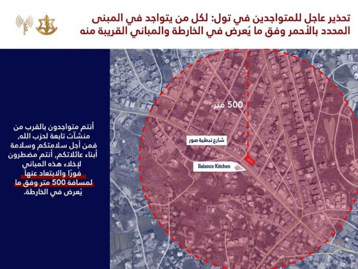 تحذير عاجل للمتواجدين في قرية تول في جنوب لبنان وتحديدًا لكل من يتواجد في المبنى المحدد بالأحمر وفق ما يُعرض في الخارطة والمباني القريبة منه