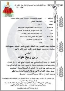 وفاة الطفل راين ربيع عواد ابن رئيس مركز القوات اللبنانية في عمشيت غرقًا.