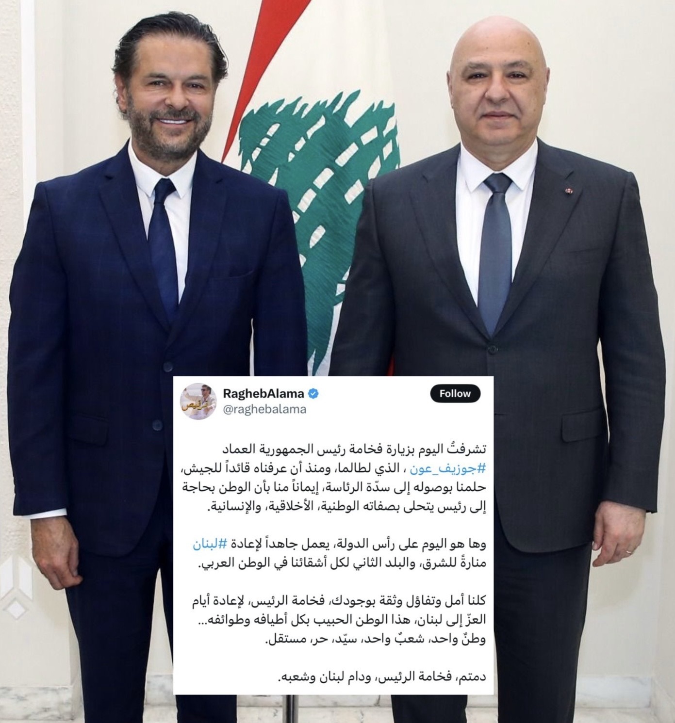 زار الفنان راغب علامة رئيس الجمهورية جوزاف عون في قصر بعبدا، حيث عبّر عن سعادته بهذا اللقاء قائلاً: “حلمنا بوصولك إلى سدّة الرئاسة، وكلنا أمل بوجودك أن تعود أيام العزّ إلى لبنان”.