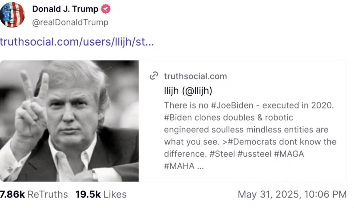 في وقت متأخر من ليلة السبت الماضي، أعاد ترامب نشر منشور على موقع “تروث سوشيال” يزعم فيه أن خصمه السياسي والرئيس السابق جو بايدن، قد قُتل عام 2020 وحل محله روبوت مُستنسخ من دون علم الديمقراطيين.