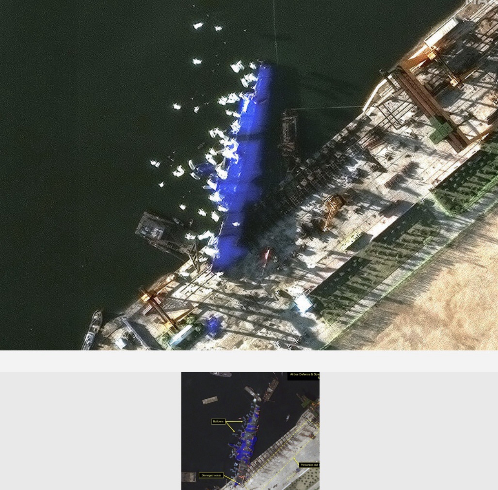 وفيما تُظهر صور 2 يونيو أن مقدمة المدمرة لا تزال مستقرة فوق آلية الإطلاق، تكشف صور التُقطت في 29 أيار عن أضرار محتملة في قسم السونار الأمامي للسفينة. وقد يتطلب إصلاح هذا الجزء إخراج السفينة بالكامل من المياه ووضعها إما في حوض عائم أو حوض جاف مخصص لأعمال البناء والصيانة.