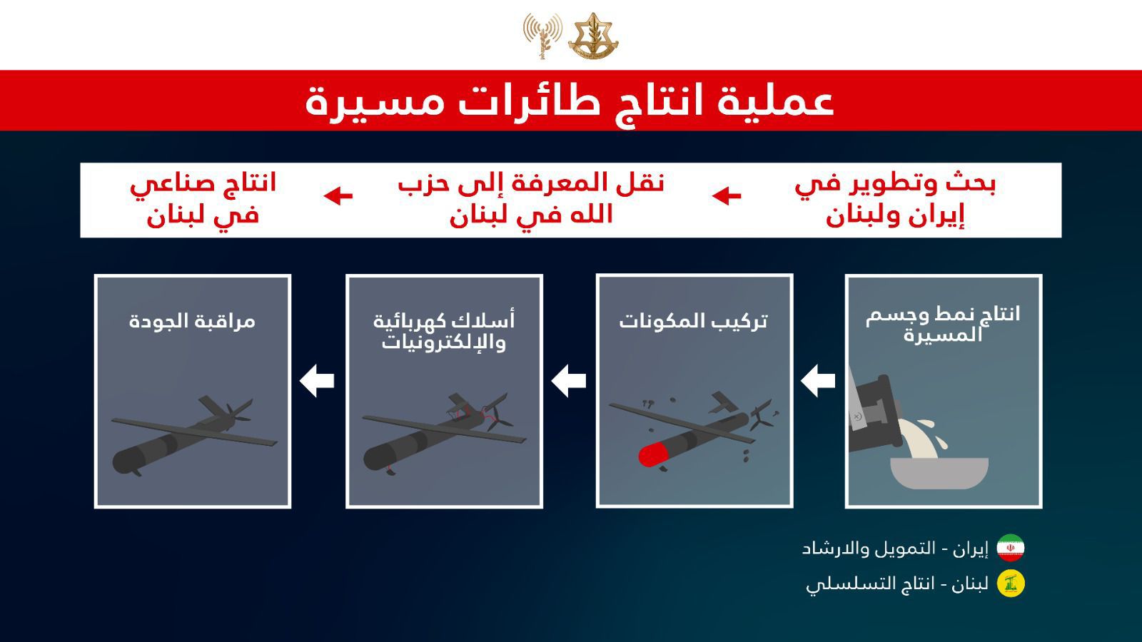 رغم تفاهمات الاتفاق بين إسرائيل ولبنان رصد جيش الدفاع قيام الوحدة الجوية في حزب الله الارهابي (127) بالعمل لانتاج الالاف العديدة من المسيرات بتوجيه وتمويل جهات إرهابية إيرانية.