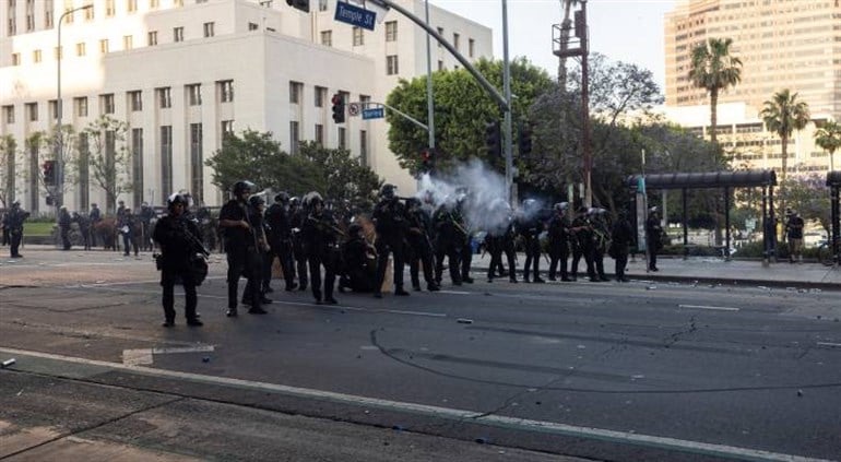 وتصاعدت التوترات في لوس أنجلوس يوم الأحد مع نزول آلاف المتظاهرين إلى الشوارع ردا على نشر الرئيس الأميركي دونالد ترامب الاستثنائي للحرس الوطني، مما أدى إلى إغلاق طريق سريع رئيسي وإشعال النار في مركبات ذاتية القيادة في الوقت الذي استخدمت فيه قوات إنفاذ القانون المحلية الغاز المسيل للدموع والرصاص المطاطي والقنابل الصوتية للسيطرة على الحشود.