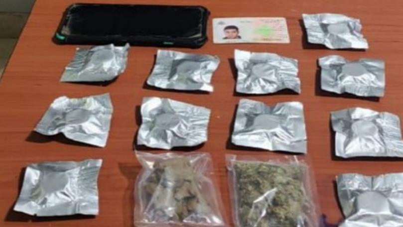بتفتيشه، عثر بحوزته على /11/ طبة من مادة باز الكوكايين، كميّة من مادّتي الماريجوانا وحشيشة الكيف، بالإضافة إلى هاتف خلوي.