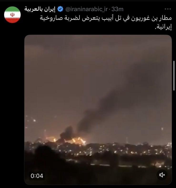 اخبار دوليةعلى مدار الساعة ايران بالعربية – تعرض مطار بن غوريون لضربة صاروخية يونيو 15, 2025 0 160 FacebookTwitterWhatsApp