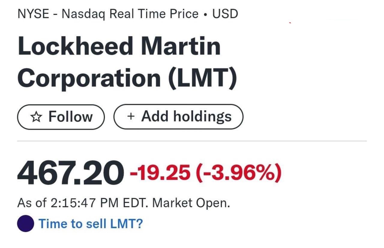 اخبار دوليةعلى مدار الساعة هبوط أسهم شركة لوكهيد مارتن الامريكية بعد إسقاط الدفاعات الجوية الايرانية عدة طائرات مقاتلة من طراز إف-35 من صنعها يونيو 16, 2025 0 176 FacebookTwitterWhatsApp
