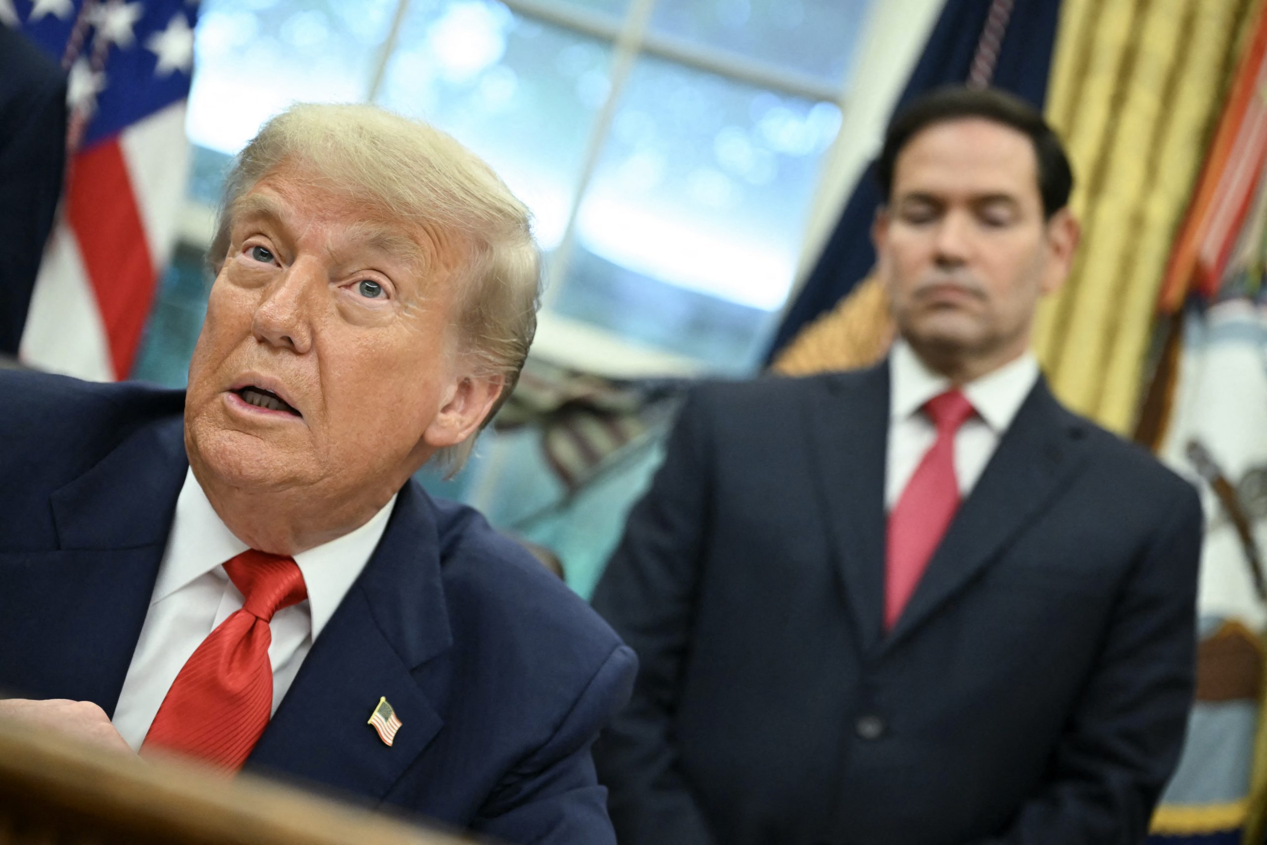 US President Donald Trump speaks as US Secretary of State Marco Rubio (R)